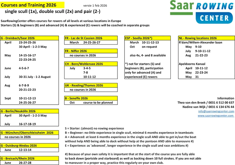 Het SaarRowingCenter van Theo van den Broek en Nadine van Wijk is een professionele roeischool voor masters en breedtesporters. Wij bieden cursussen aan die gericht zijn op het verbeteren of optimaliseren van roeitechniek en sneller varen.